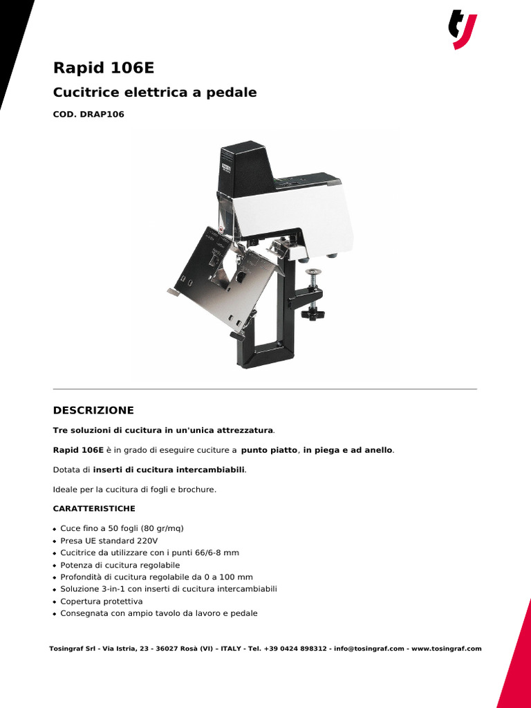 Tosingraf Srl - Via Istria, 23 - 36027 Rosà (VI) – ITALY - Tel. +39 0424 898312 - info@[Link] - [Link]