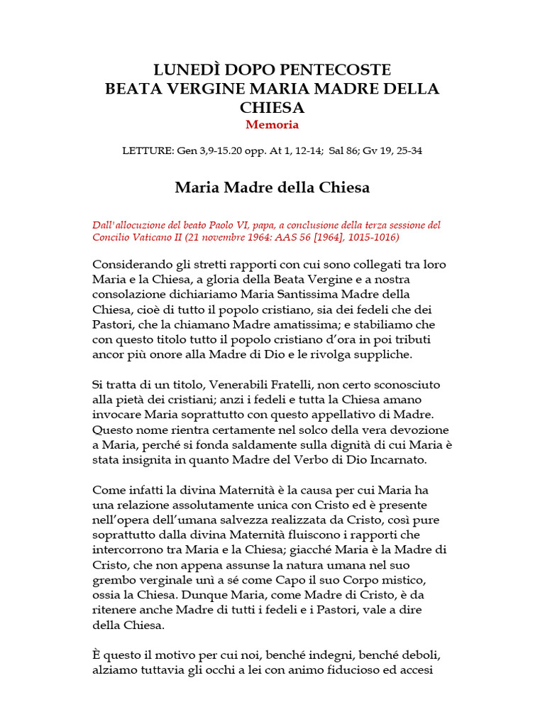 LUNEDÌ DOPO PENTECOSTE