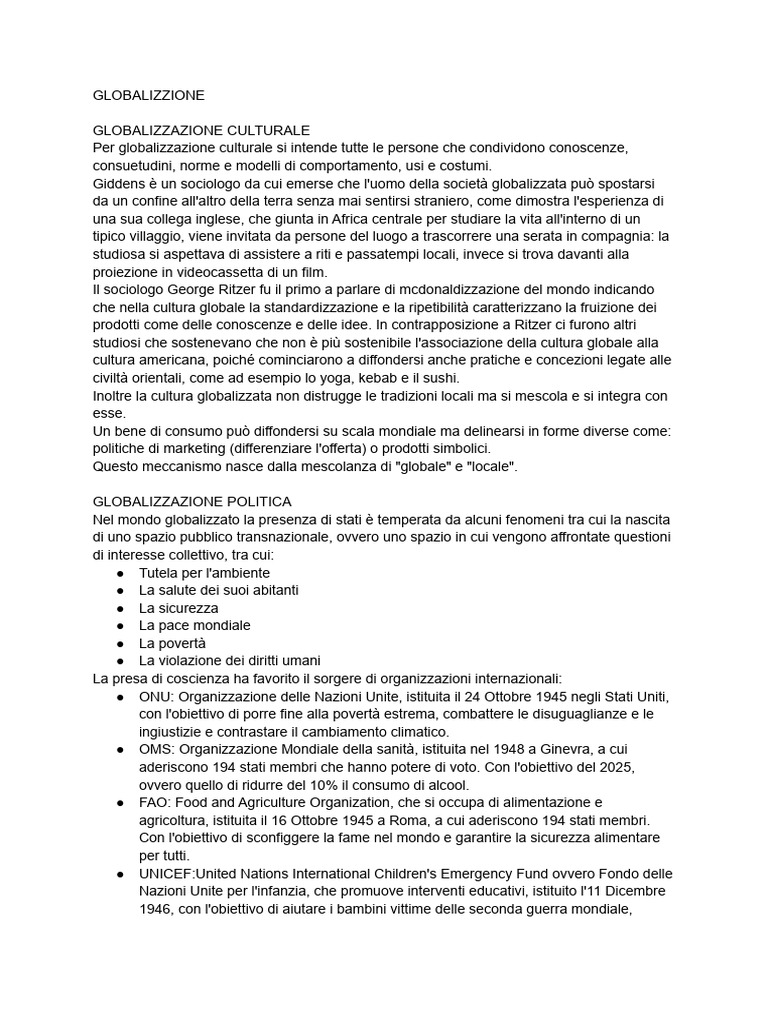 GLOBALIZZAZIONE CULTURALE