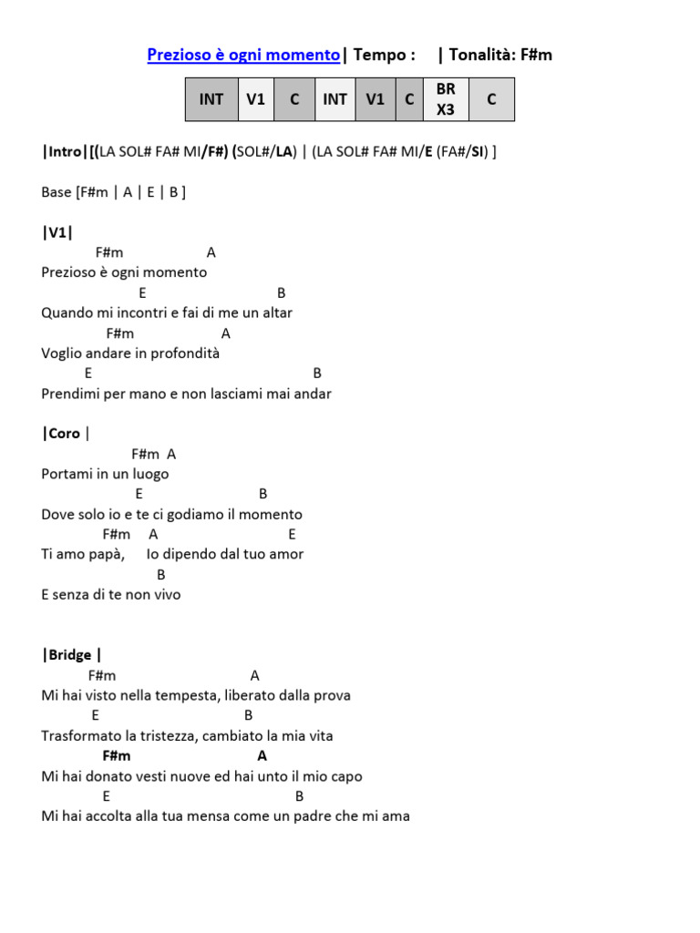 Prezioso è ogni momento| Tempo : | Tonalità: F#m