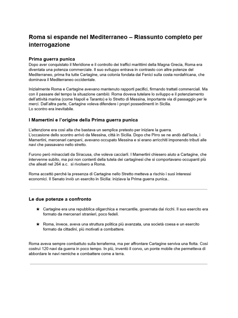 Roma si espande nel Mediterraneo – Riassunto completo per