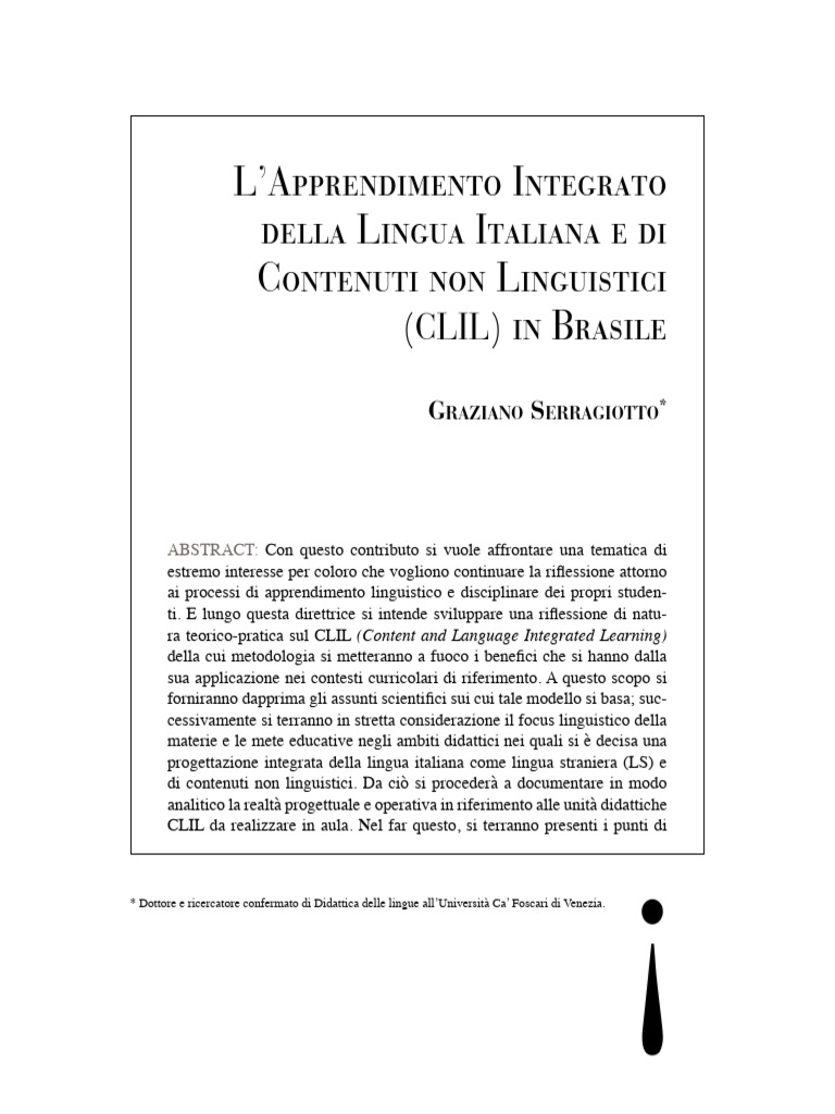 serrAGIotto, G. CLIL. Apprendere insieme una lingua e contenuti non linguistici.