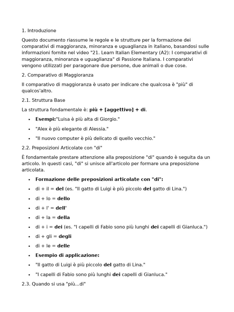 informazioni fornite nel video "21. Learn Italian Elementary (A2): I comparativi di