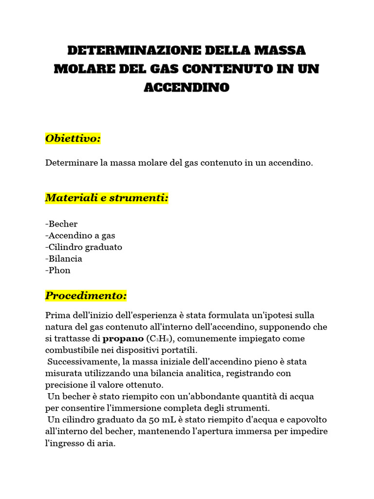 all'interno dell'accendino fosse propano (C₃H₈), caratterizzato da