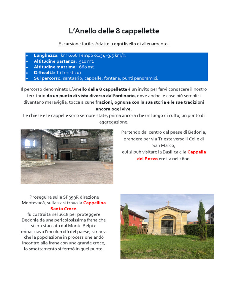 Il percorso denominato L’Anello delle 8 cappellette è un invito per farvi conoscere il nostro