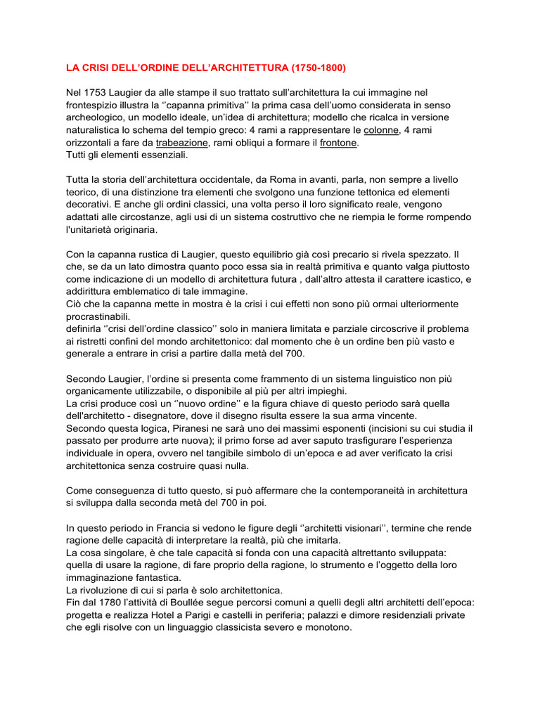 LA CRISI DELL’ORDINE DELL’ARCHITETTURA (1750-1800)