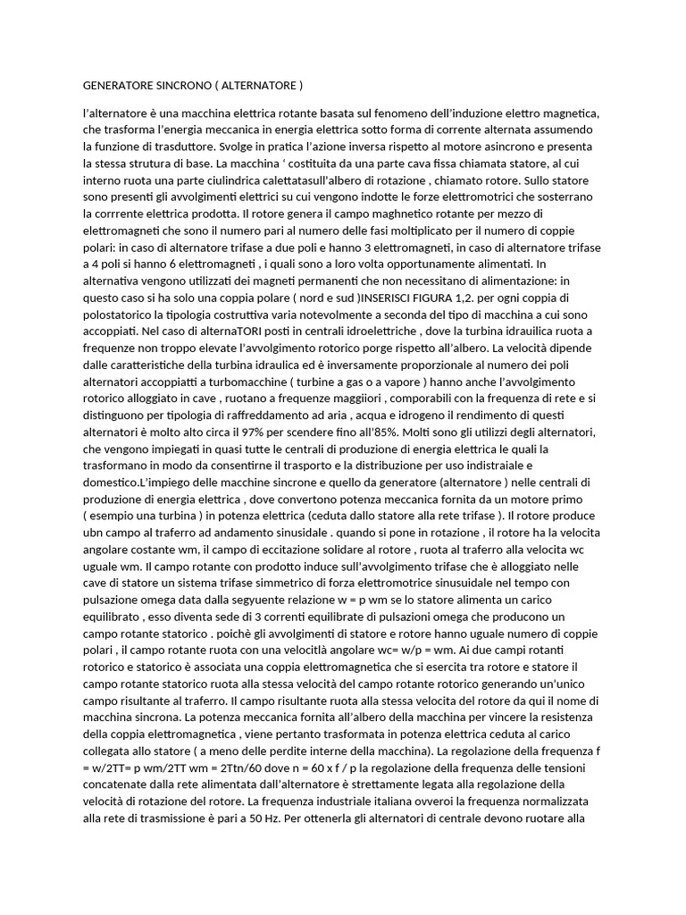 domestico.L’impiego delle macchine sincrone e quello da generatore (alternatore ) nelle centrali di