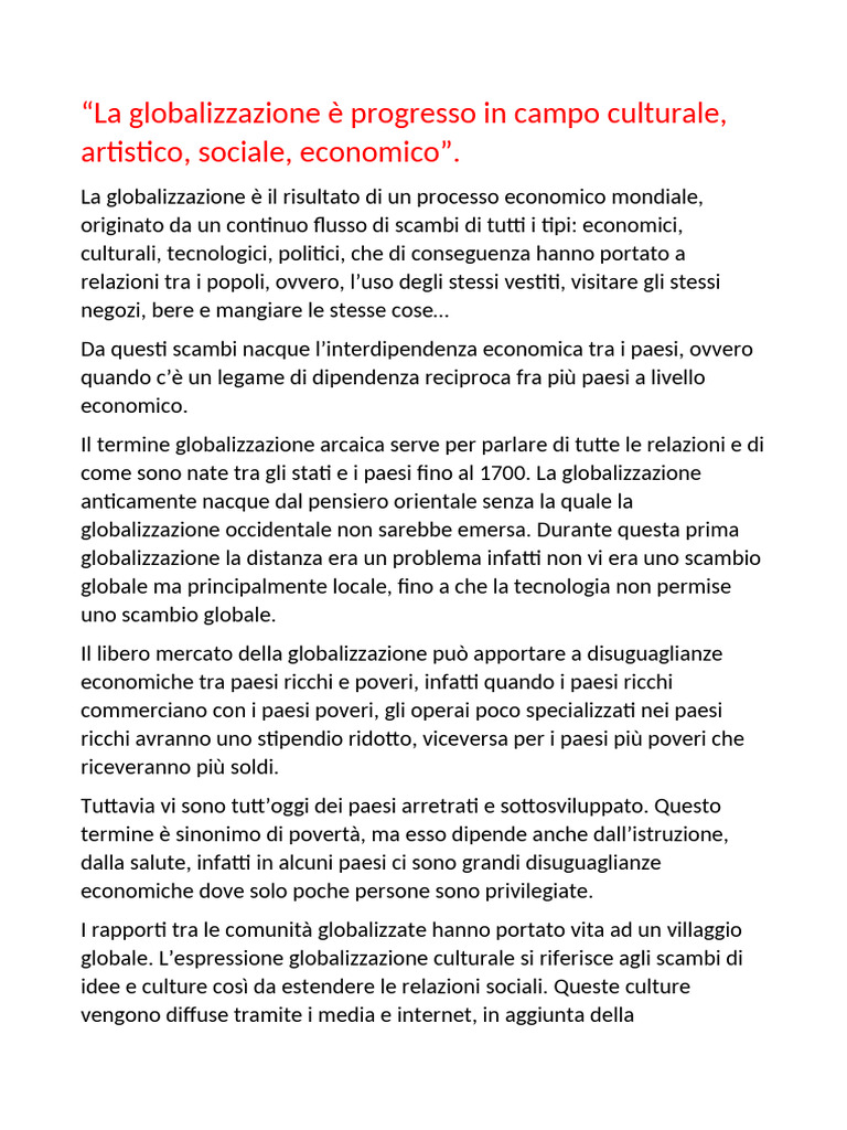 globale. L’espressione globalizzazione culturale si riferisce agli scambi di