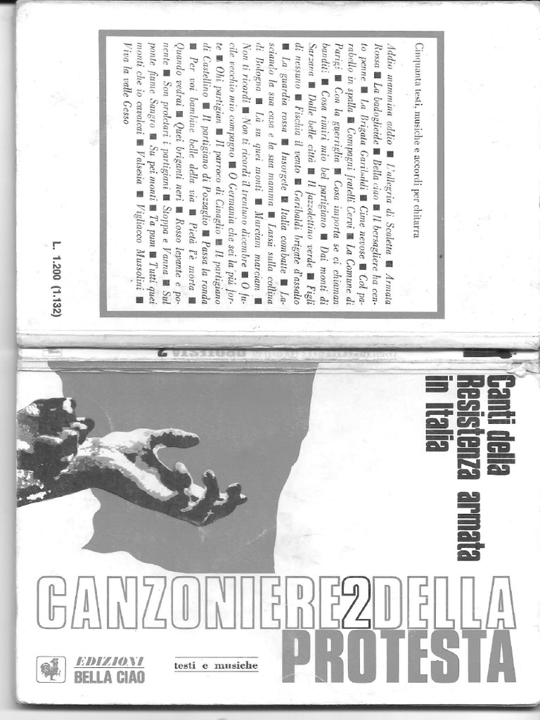 Il documento presenta una raccolta di canti della Resistenza armata in Italia, con testi e musiche di diverse canzoni patriottiche. Include titoli noti come 'Bella Ciao' e 'Fischia il Vento', evidenziando il significato storico e culturale di queste opere. La scaletta sembra essere un elenco di brani musicali con le relative attribuzioni e arrangiamenti.