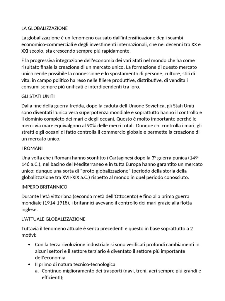 a. (La globalizzazione è un fenomeno legato alla liberalizzazione ) La