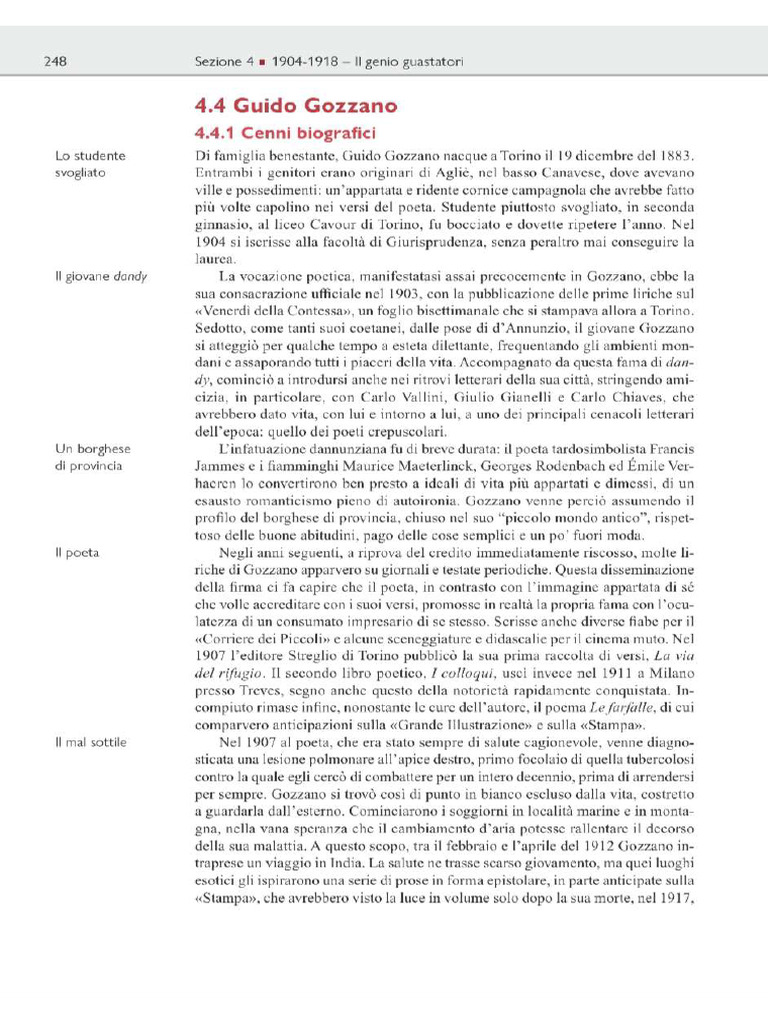 una stagione precisa e transitoria della vita, quella giovanile.4.4 Guido Gozzano 253