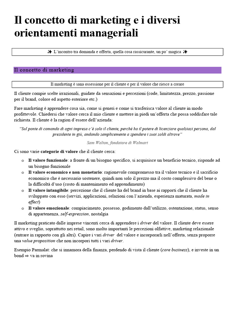 Fare marketing è apprendere cosa sia, come si generi e come si trasferisca valore al cliente in modo