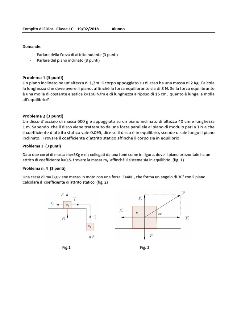 Compito di Fisica Classe 1C 19/02/2018 Alunno