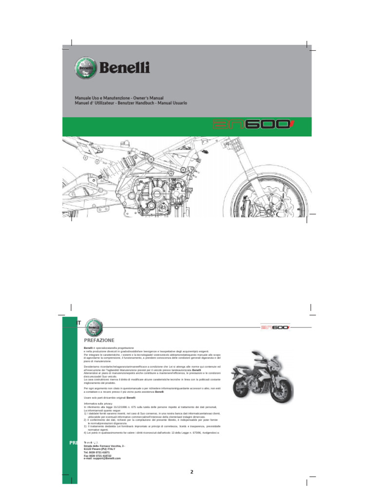 Contiene informazioni importanti per un uso sicurodella moto e per il suo mantenimento in efficienza.