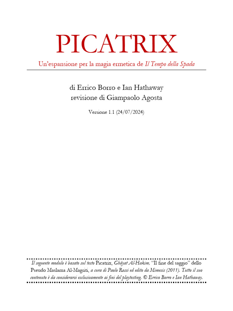 contenuto è da considerarsi esclusivamente ai fini del playtesting. © Errico Borro e Ian Hathaway.