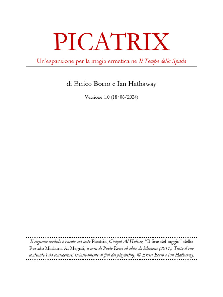 contenuto è da considerarsi esclusivamente ai fini del playtesting. © Errico Borro e Ian Hathaway.