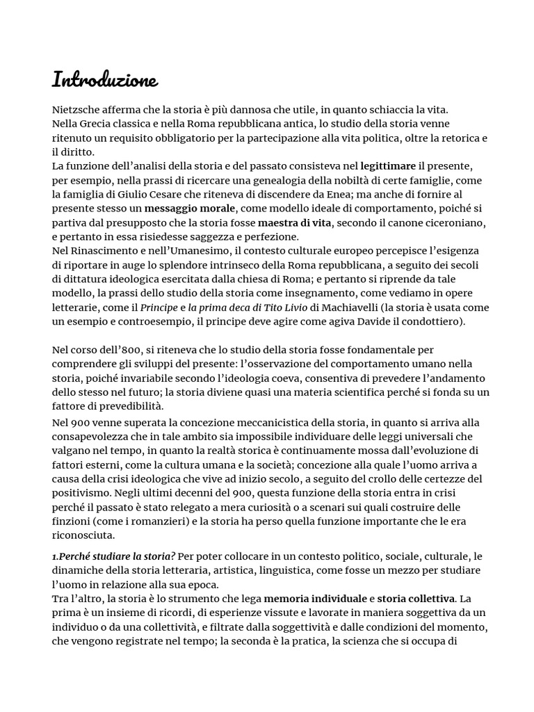 1.Perché studiare la storia? Per poter collocare in un contesto politico, sociale, culturale, le