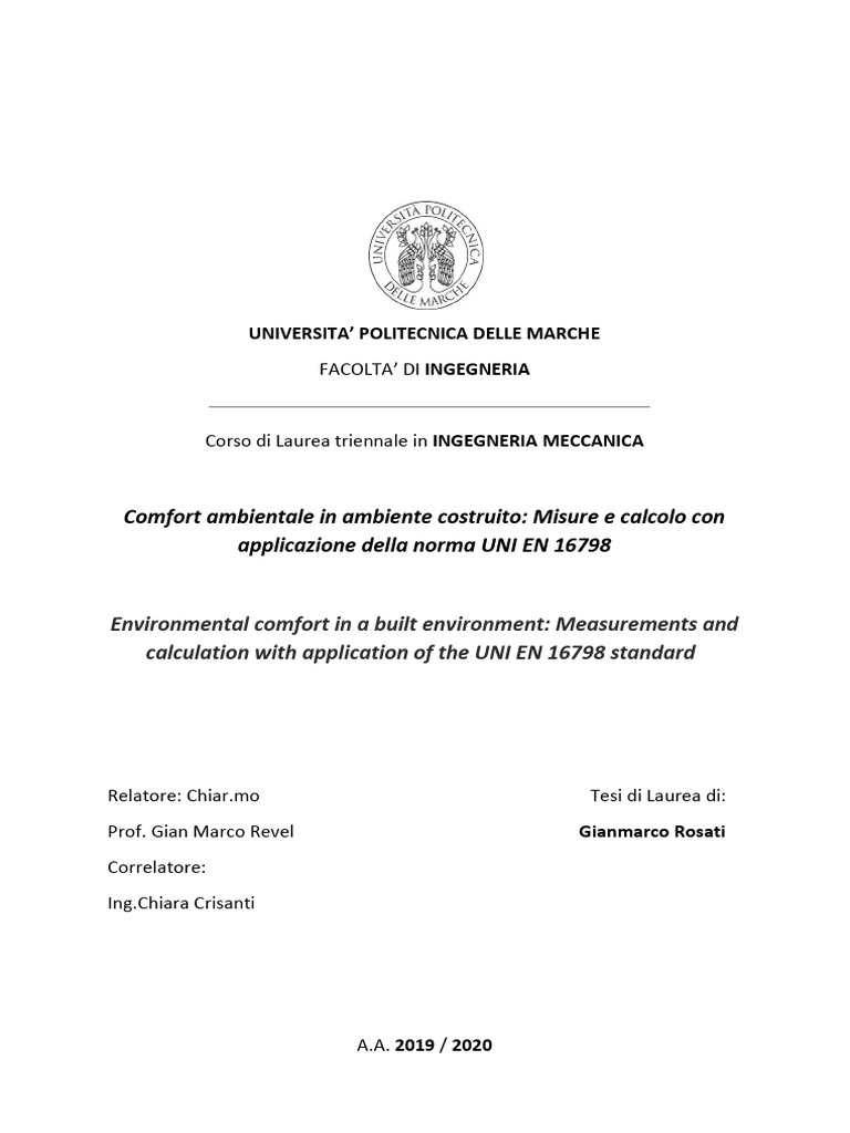trattazione al problema comfort è stato quello di analizzare, studiare ed aggiornare due strumenti di