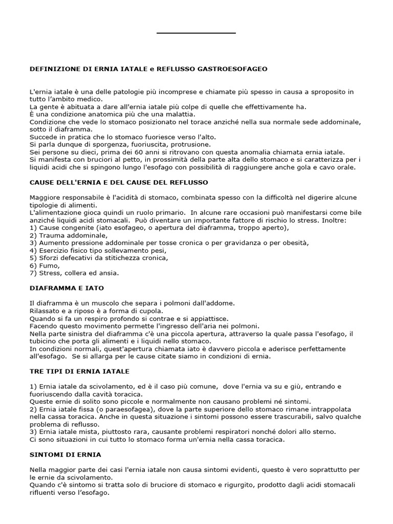 reflusso gastrico), nel 9% è ernia iatale fissa paraesofagea (in genere non grave, ma con reflusso),