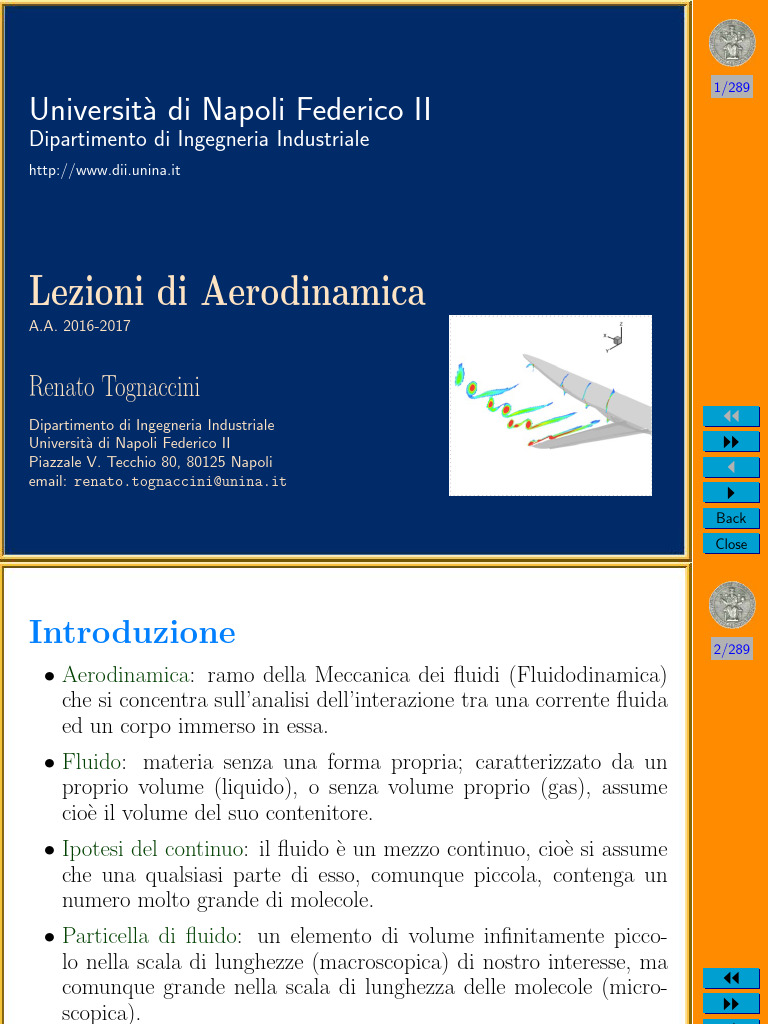 • Aerodinamica: ramo della Meccanica dei fluidi (Fluidodinamica)