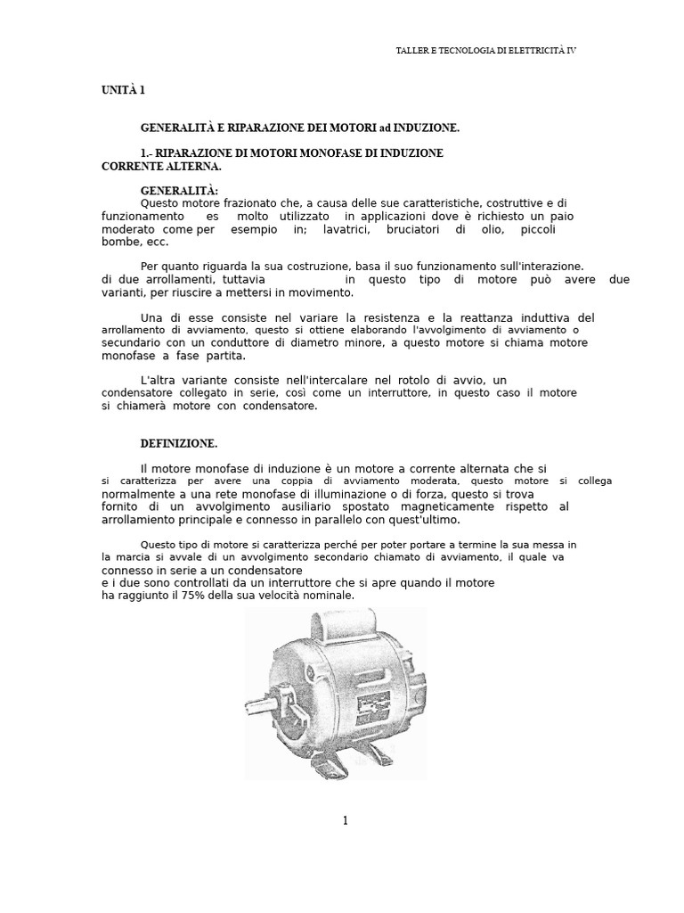 1.- RIPARAZIONE DI MOTORI MONOFASE DI INDUZIONE