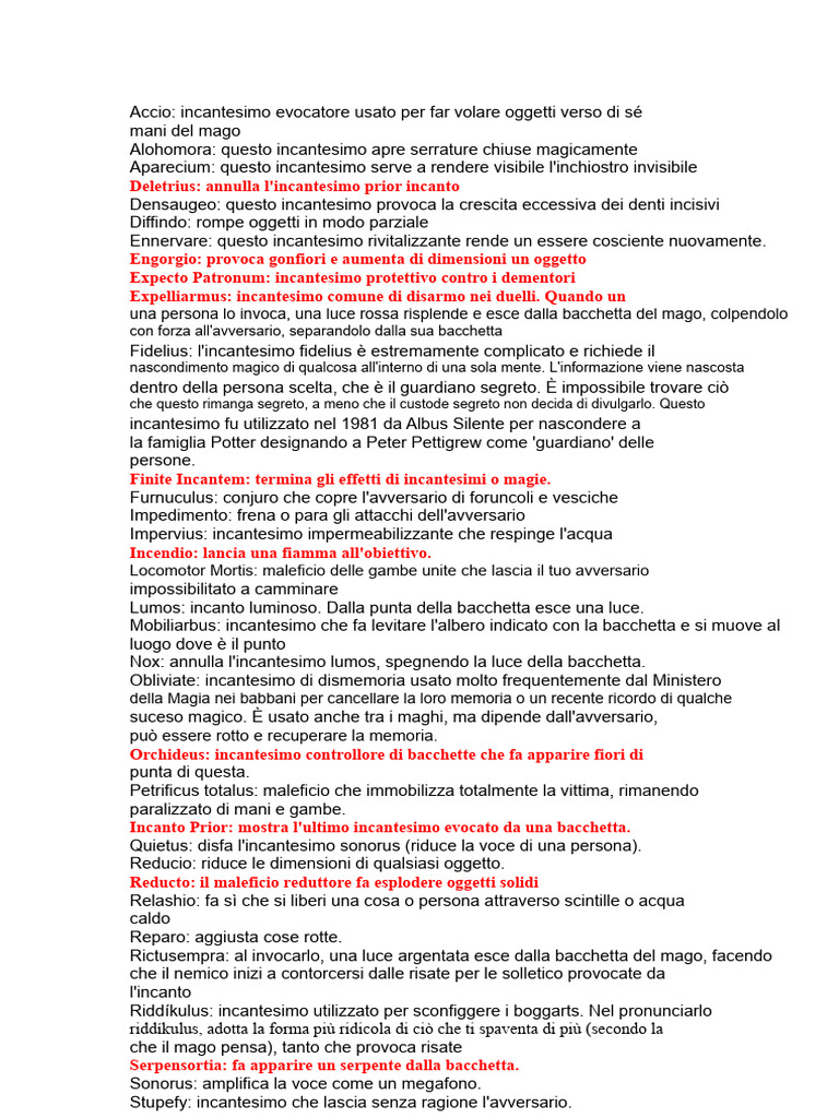Finite Incantem: termina gli effetti di incantesimi o magie.