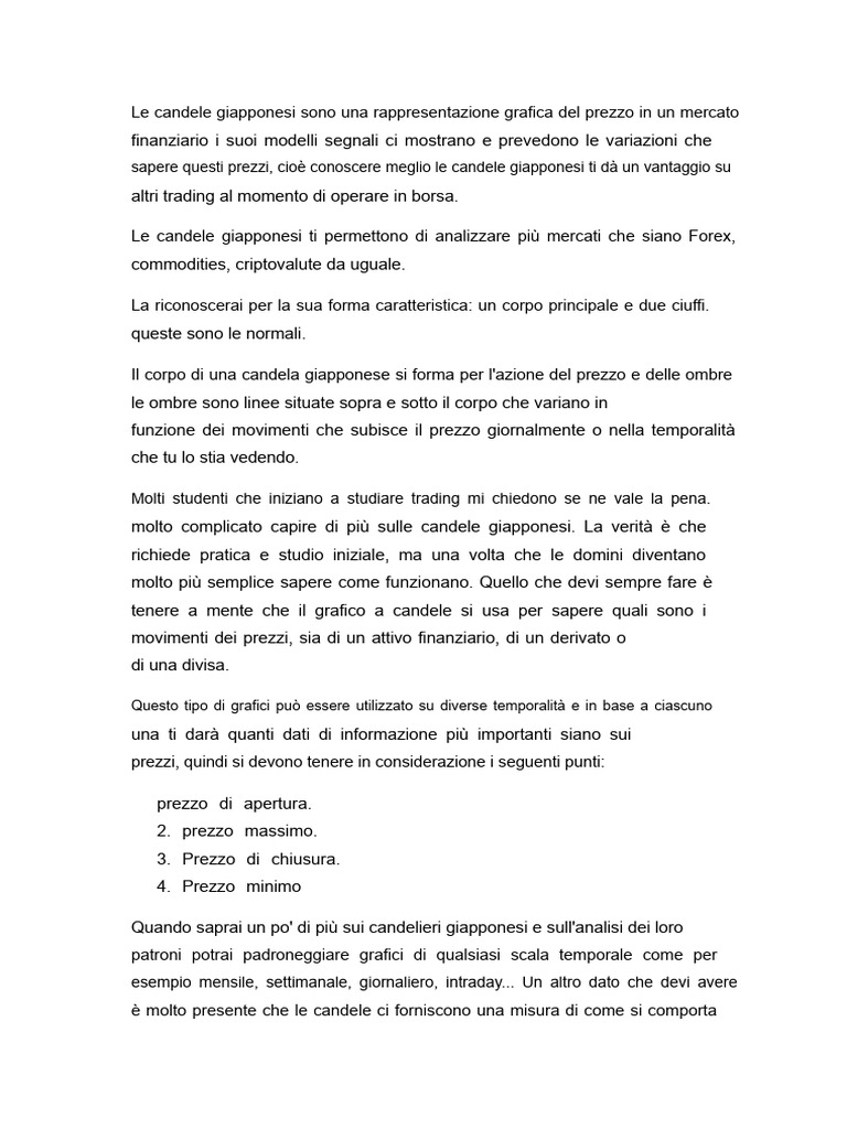 tenere a mente che il grafico a candele si usa per sapere quali sono i