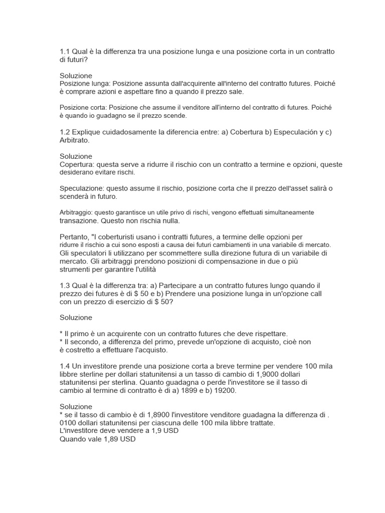 1 Qual è la differenza tra una posizione lunga e una posizione corta in un contratto