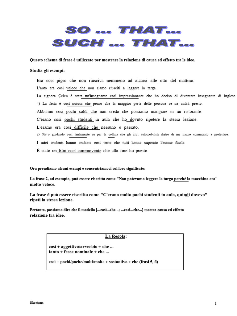 Pertanto, possiamo dire che il modello [...così...che...; ...così...che...] mostra causa ed effetto