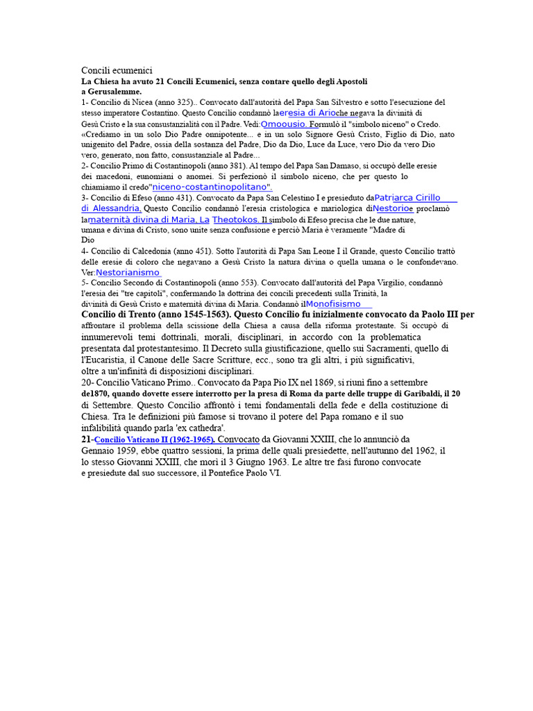 1- Concilio di Nicea (anno 325).. Convocato dall'autorità del Papa San Silvestro e sotto l'esecuzione del