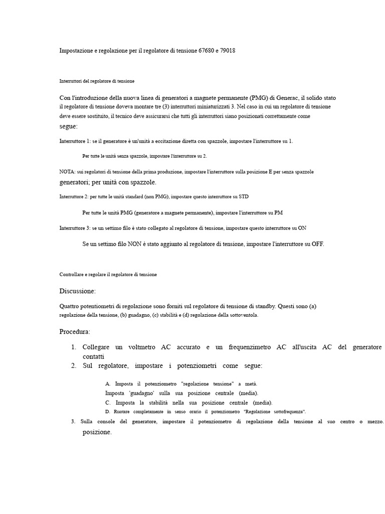(PMG) di Generac, il regolatore di tensione a stato solido ha dovuto montare tre