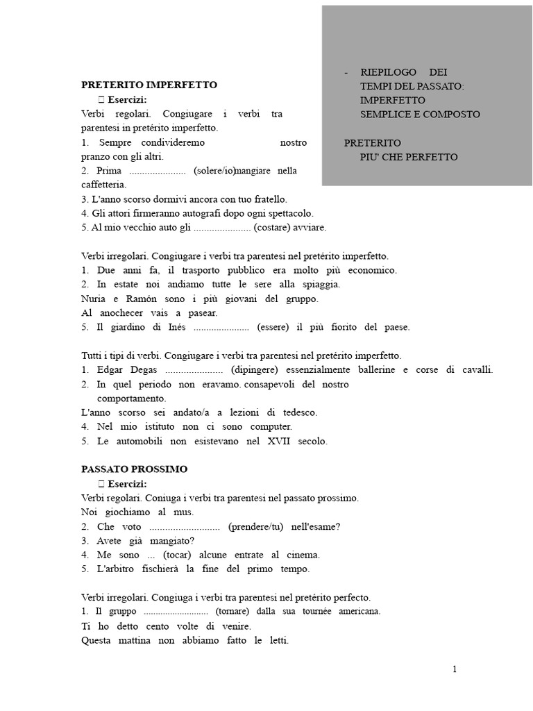 Verbi regolari e irregolari. Congiuga i verbi al pretérito imperfetto.