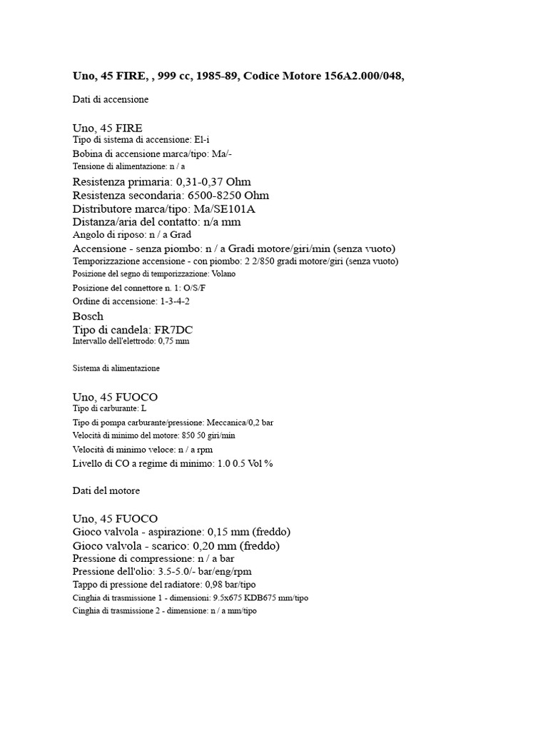 Accensione - senza piombo: n / a Gradi motore/giri/min (senza vuoto)