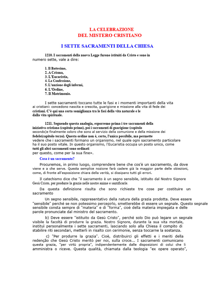 instituì personalmente i sette sacramenti, lasciando solo alla Chiesa il compito di