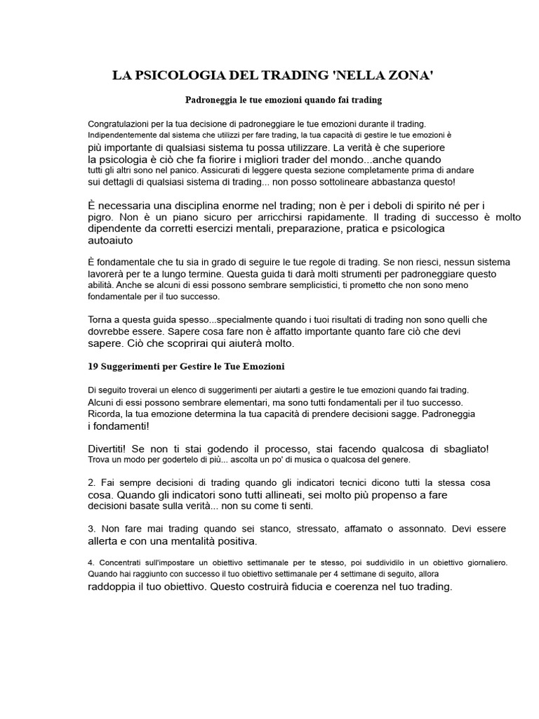 Fare trading con successo, fare trading per vincere, fare trading 'NELLA ZONA', padroneggiare il