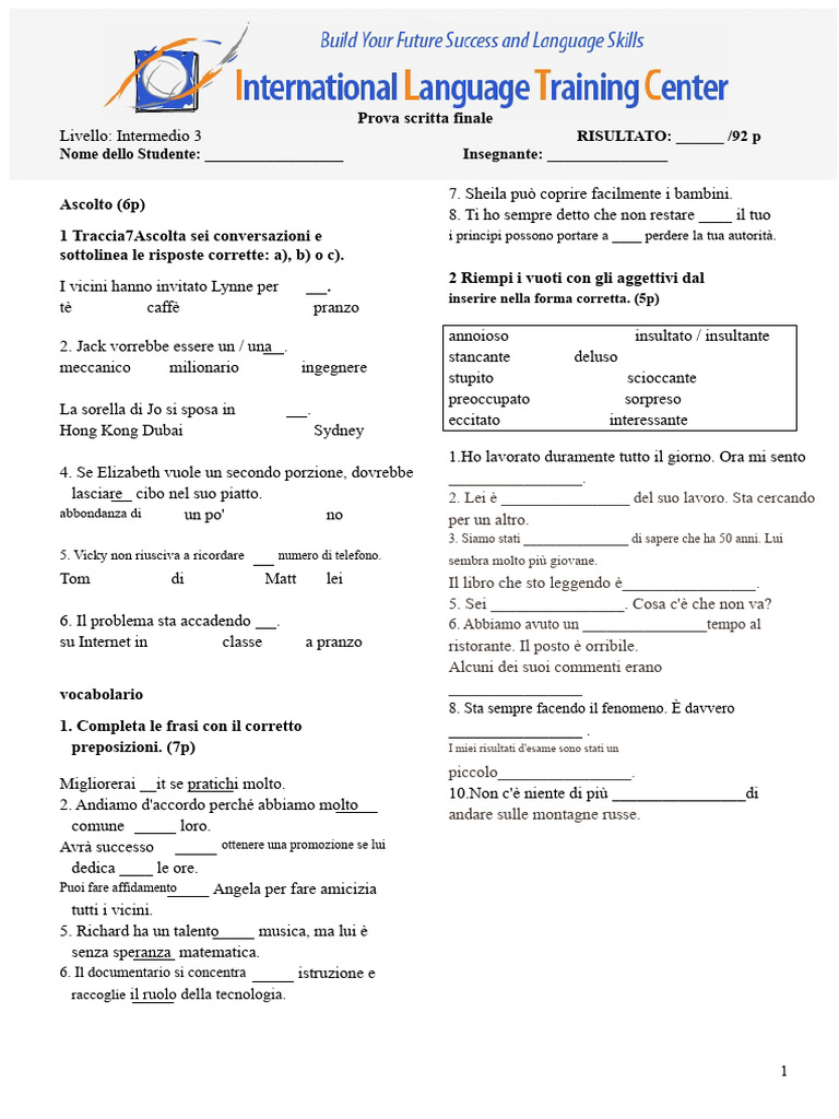 4Tim ha appena iniziato un(a) corso in 5 Sottolinea le alternative corrette. (5p)