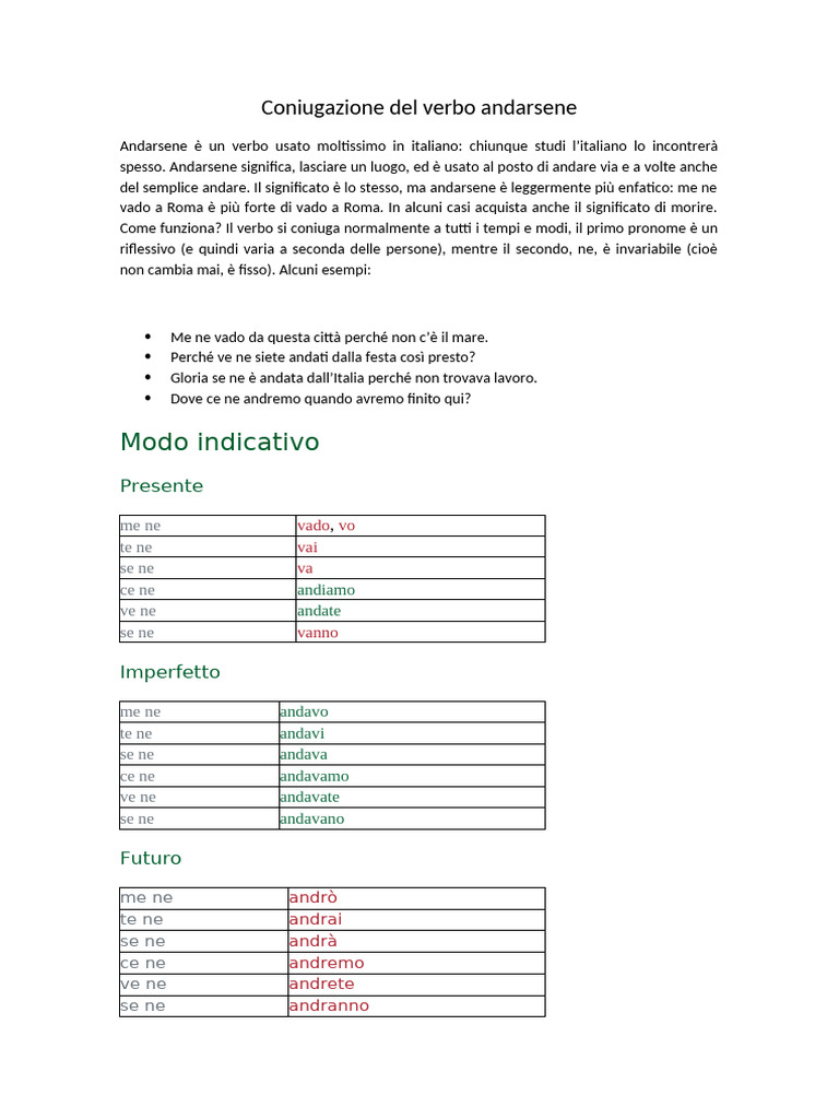 Coniugazione del verbo andarsene