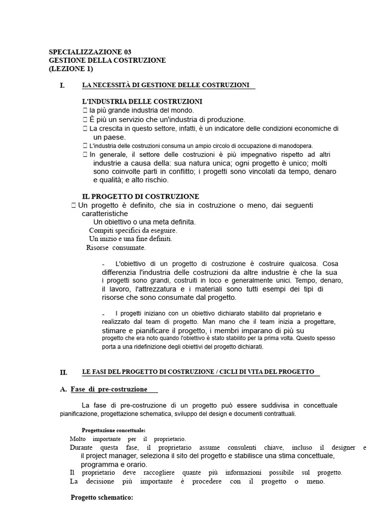 GESTIONE DELLA COSTRUZIONE
