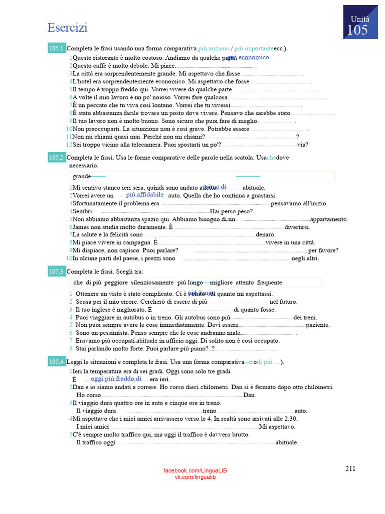 105,1 Completa le frasi usando una forma [Link]ù anziano / più importanteecc.).
