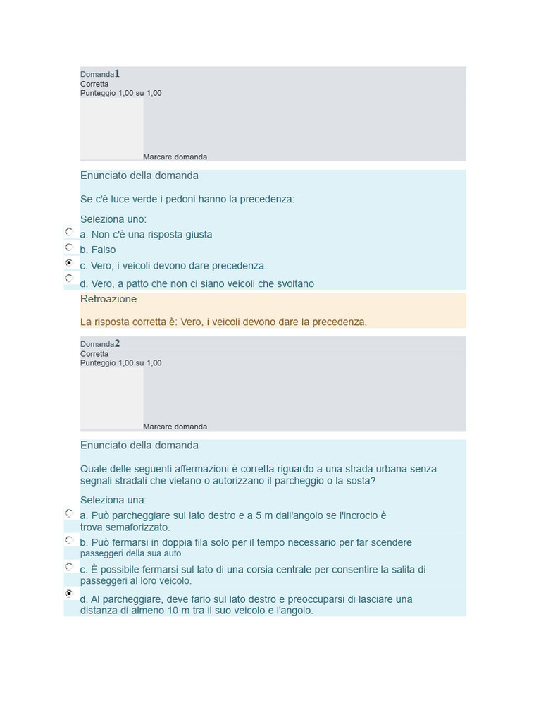 d. In tutte le situazioni posso girare senza fermarmi.