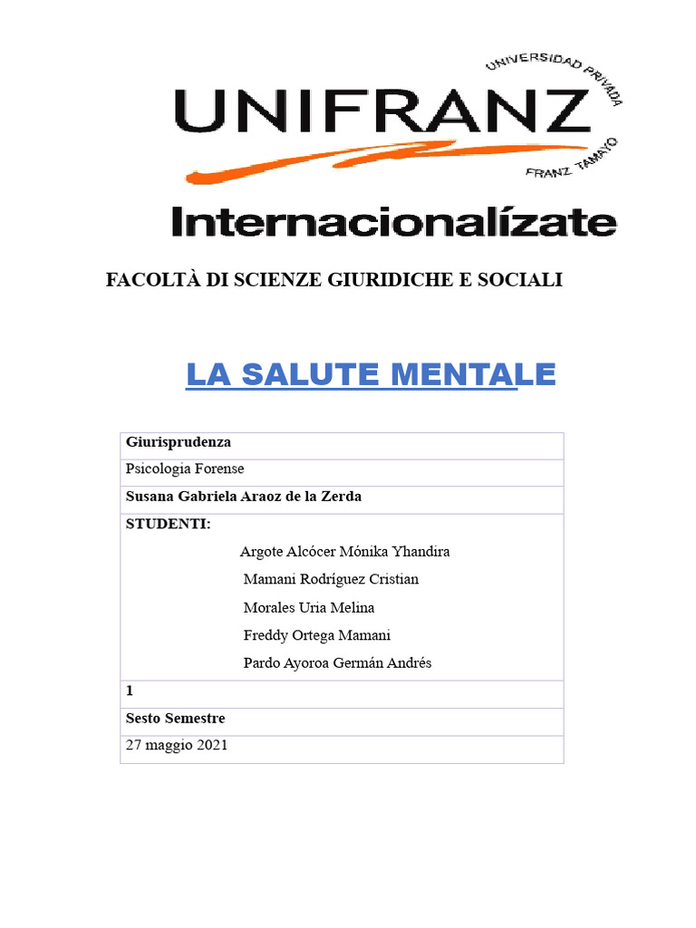 1.- Che cos'è la Salute Mentale?