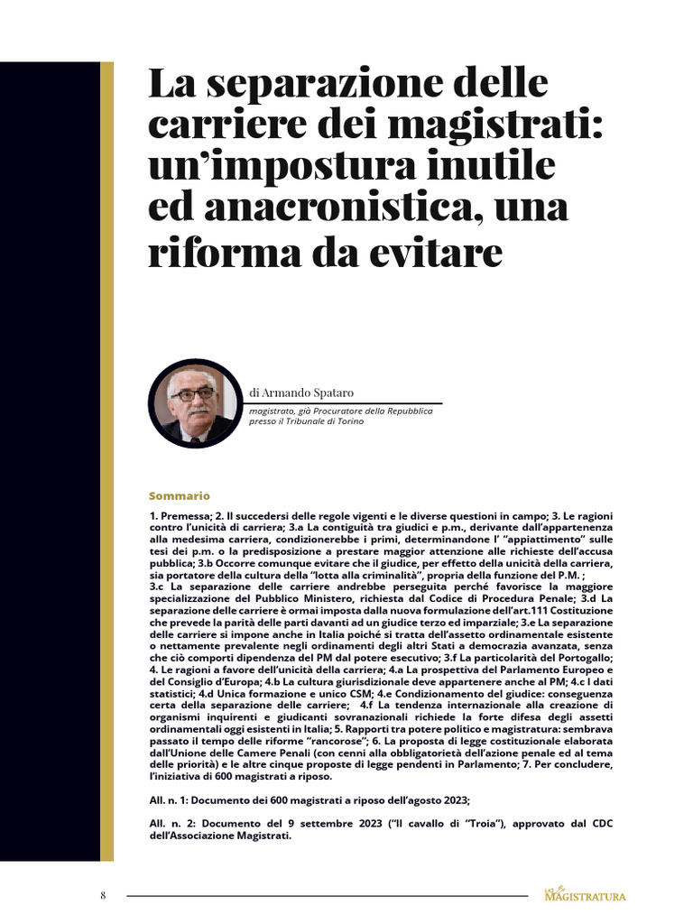 to “Separazione delle carriere tra giudici e pubblici, scelta scellerata”5, che gli ha procurato