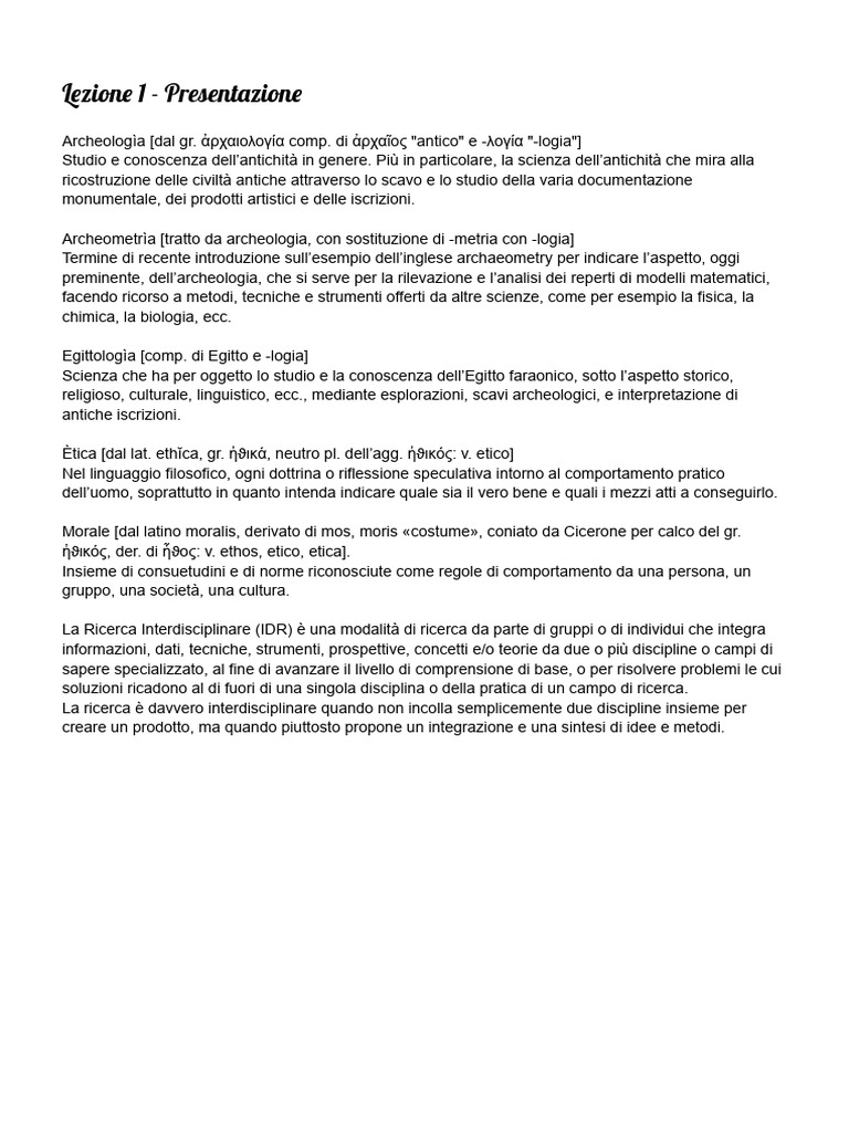 Archeologìa [dal gr. ἀρχαιολογία comp. di ἀρχαῖος "antico" e -λογία "-logia"]