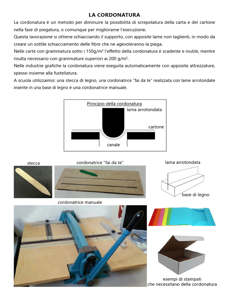Nelle industrie grafiche la cordonatura viene eseguita automaticamente con apposite attrezzature,