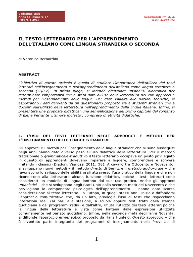 italiana, lingua straniera studiata. Da ciò si evince che il contatto diretto con il testo