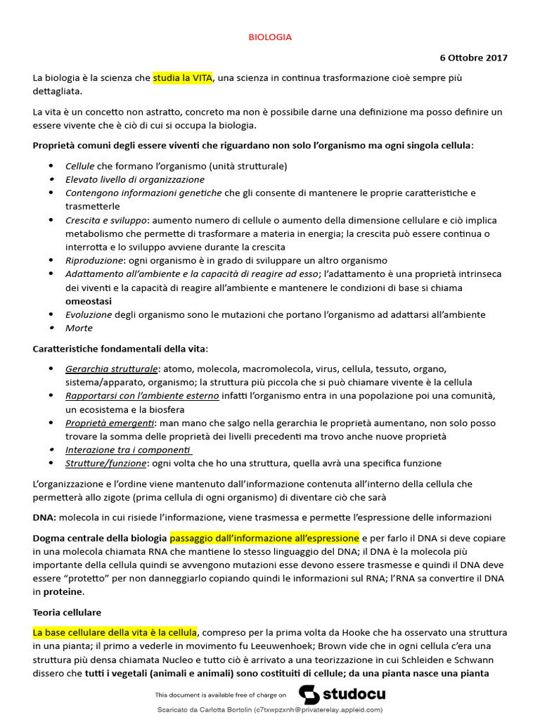 Studiando la cellula eucarioca conosco quelle di tu gli organismi eucario nonostante siano dieren