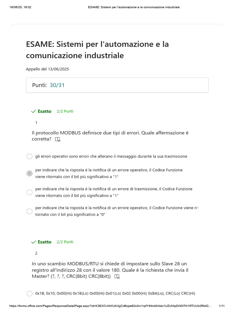 16/06/25, 16:02 ESAME: Sistemi per l'automazione e la comunicazione industriale