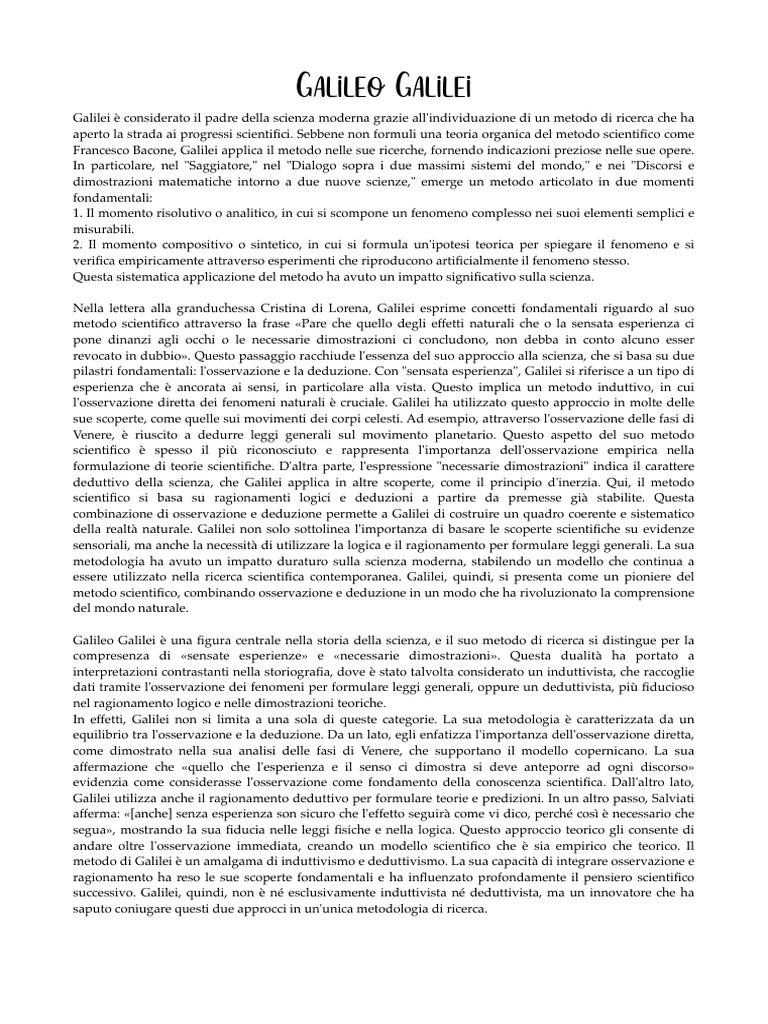 Galileo Galilei è una gura centrale nella storia della scienza, e il suo metodo di ricerca si distingue per la