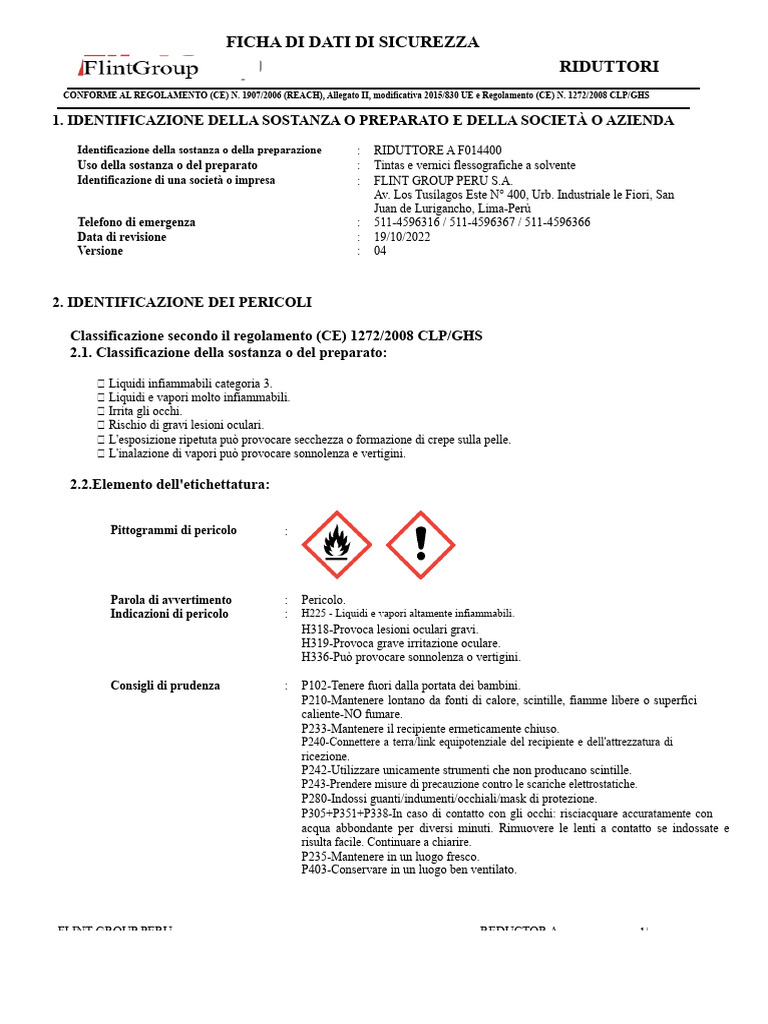 CONFORME AL REGOLAMENTO (CE) N. 1907/2006 (REACH), Allegato II, modificativa 2015/830 UE e Regolamento (CE) N. 1272/2008 CLP/GHS