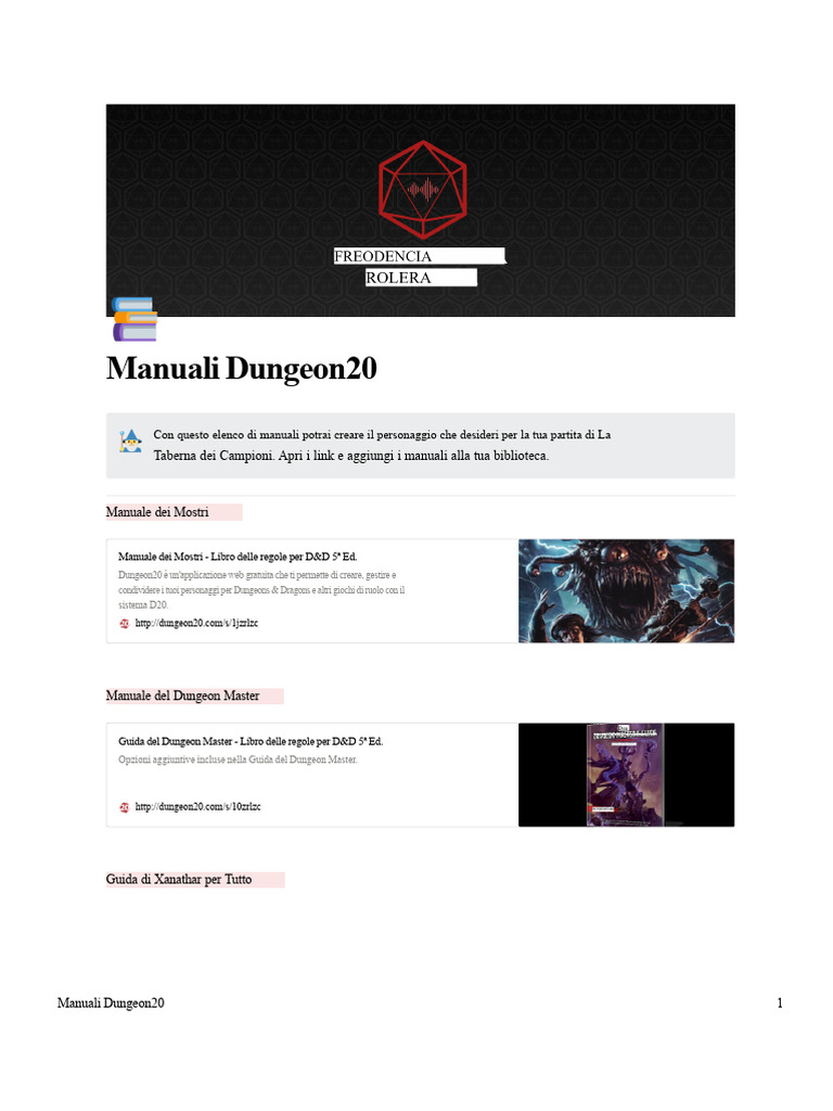 Taberna dei Campioni. Apri i link e aggiungi i manuali alla tua biblioteca.